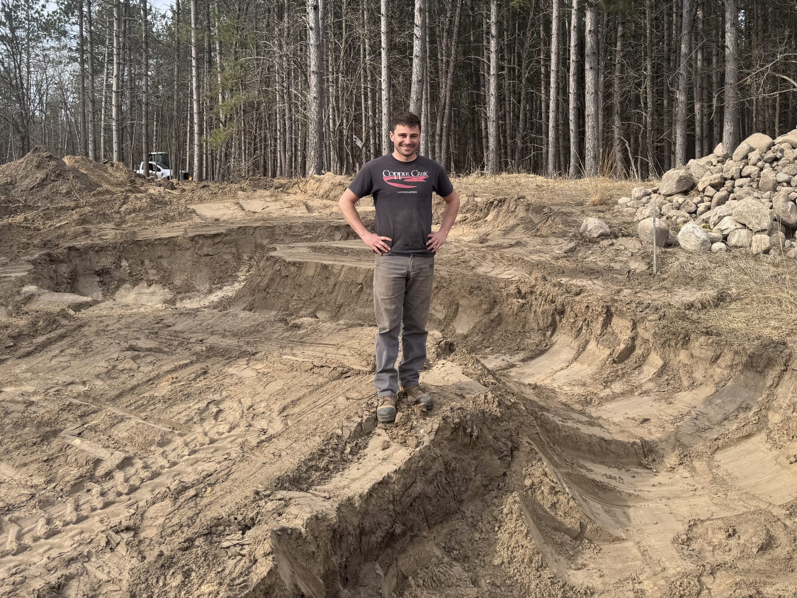 Site work is actively progressing, with crews excavating the main pond, shaping the land, and bringing in gravel. David is overseeing the pond and creek portions of the project, guiding early phases that are critical to everything that follows. These first steps—moving earth and defining the terrain—are laying the groundwork for a space designed to inspire exploration and play.