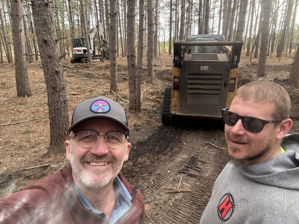 During winter site preparation, David and the WonderTrek planning team carefully ribboned trees to preserve as much of the natural environment as possible. Instead of simply clearing the land, materials are being reused. Tree tops and logs will become part of the play experience, and excavated soil is being repurposed for building pads. This sustainable approach reduces waste, respects donor investments, and ensures the campus remains deeply connected to its surroundings.